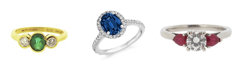 Furthermore, diamonds can surround or sit next to a coloured gemstone to beautifully complement and accentuate its beauty. Some of the most stunning engagement rings combine diamonds with other precious stones. Examples of multi-gem engagement rings in our range as some of the most exquisite.